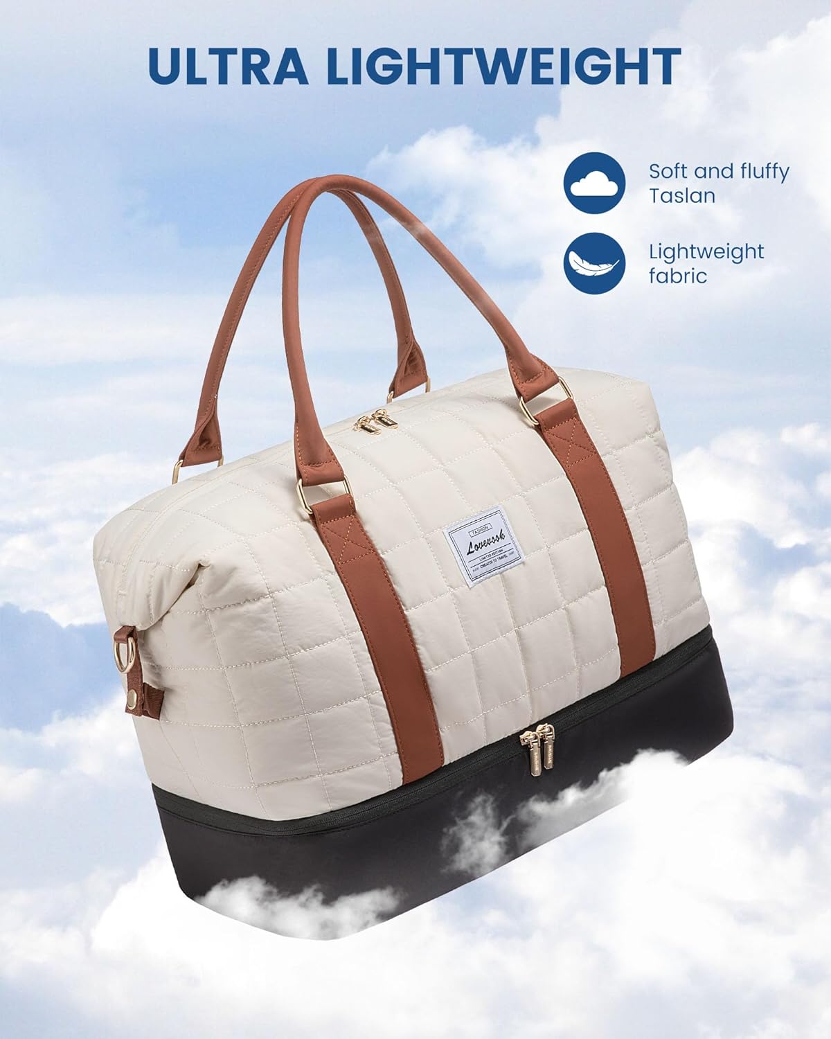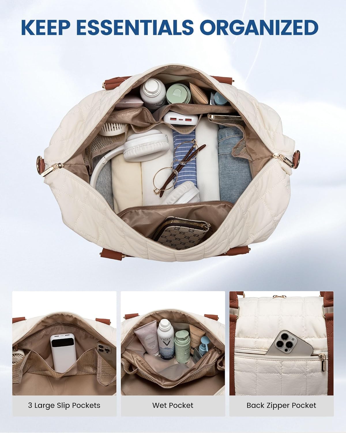 Introducing the LOVEVOOK Large Duffle Bag for Travel, the ultimate companion for your next adventure! This stylish Puffer Weekender Bag is designed specifically for women on-the-go, offering both fashion and functionality in one sleek package.