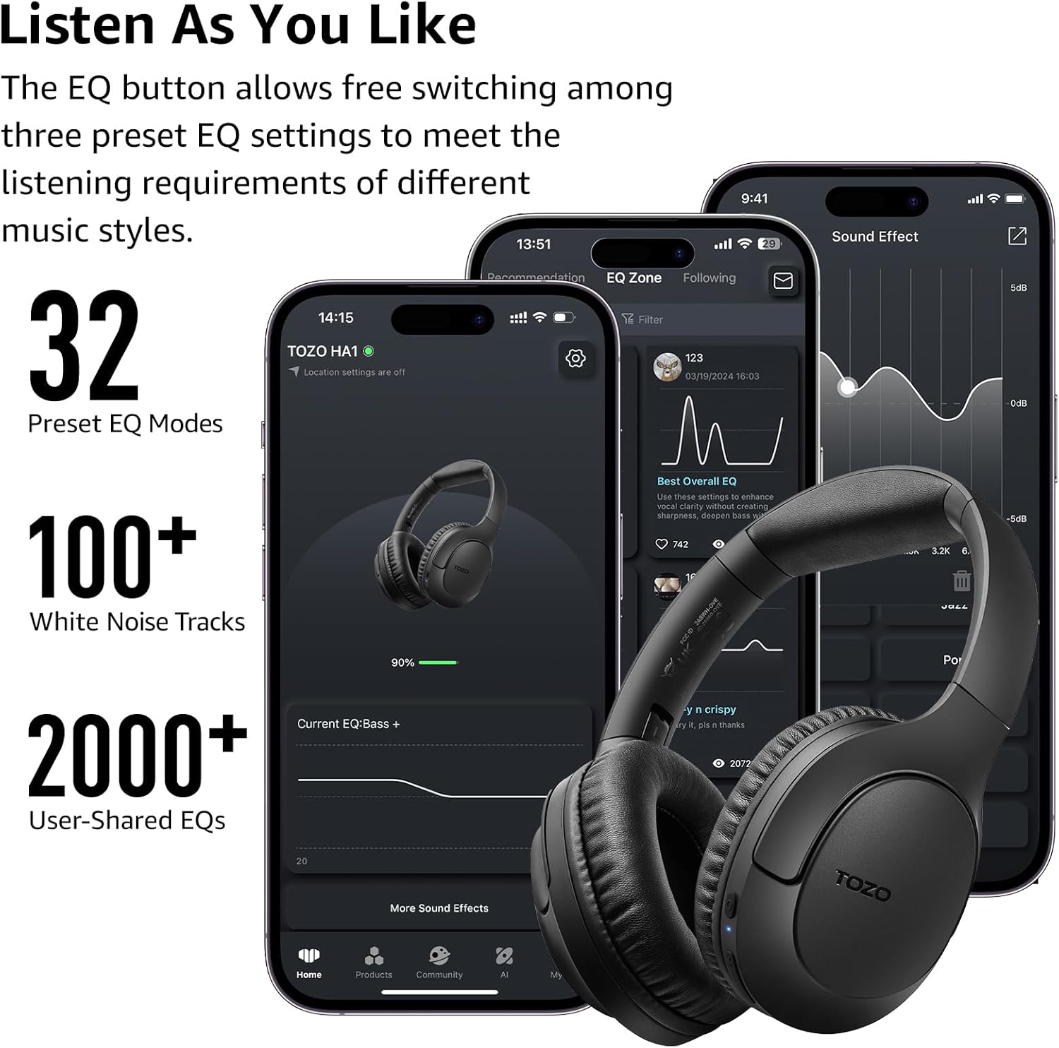 Perfect for both travel and home use, the TOZO Bluetooth 5.4 Over Ear Headphones are the ideal companion for audiophiles and music lovers alike. Upgrade your audio experience with these state-of-the-art headphones and immerse yourself in a world of premium sound quality and unmatched comfort.